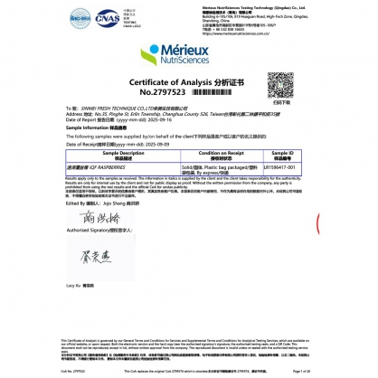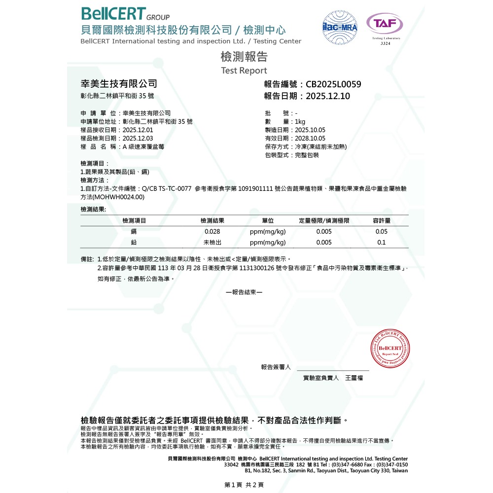 【檢驗報告】中國進口覆盆莓 (檢驗項目:農殘/重金/A肝/諾羅)報告日期: 2025/09/16