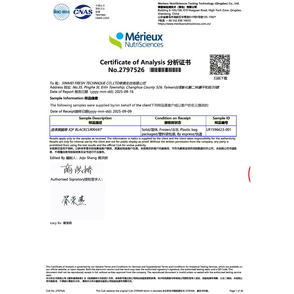 【檢驗報告】中國進口黑醋栗 (檢驗項目:農殘/重金/A肝/諾羅)報告日期: 2025/09/16