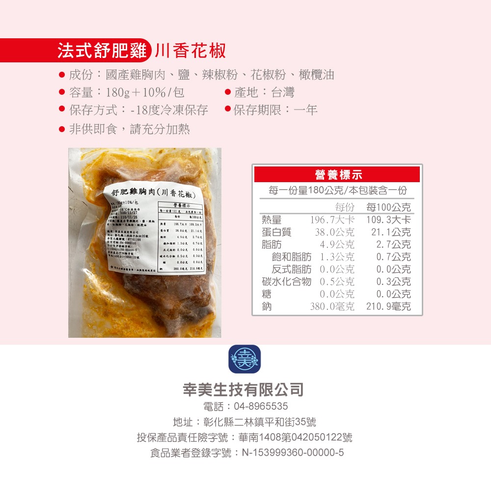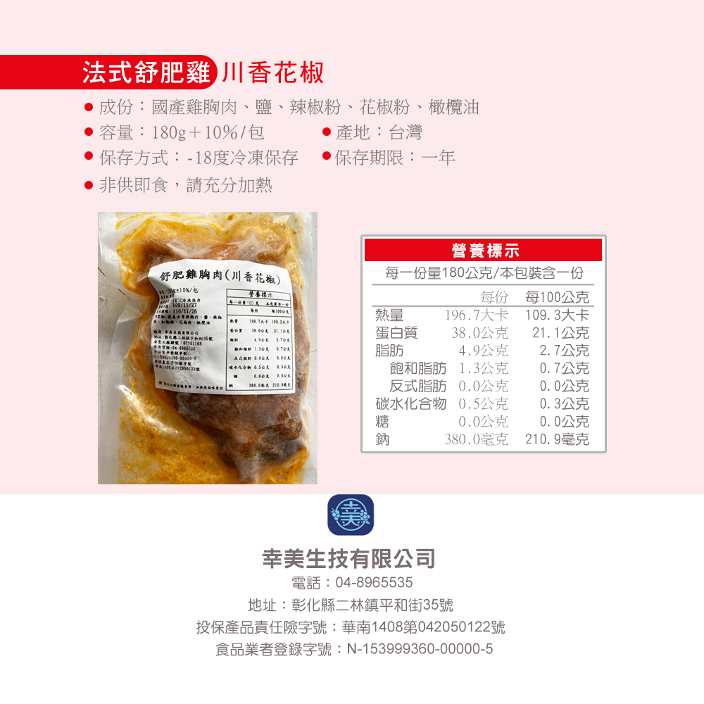 品名: 幸美生技-法式舒肥雞-川香花椒