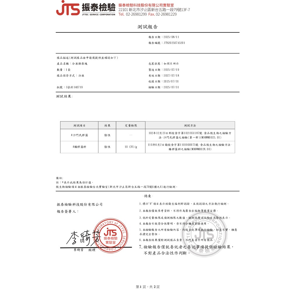【檢驗報告】【外銷等級】台灣 IQF 速凍酪梨塊(2025年產季)(檢驗項目:農殘,微生物) 報告日期:2025/08/26